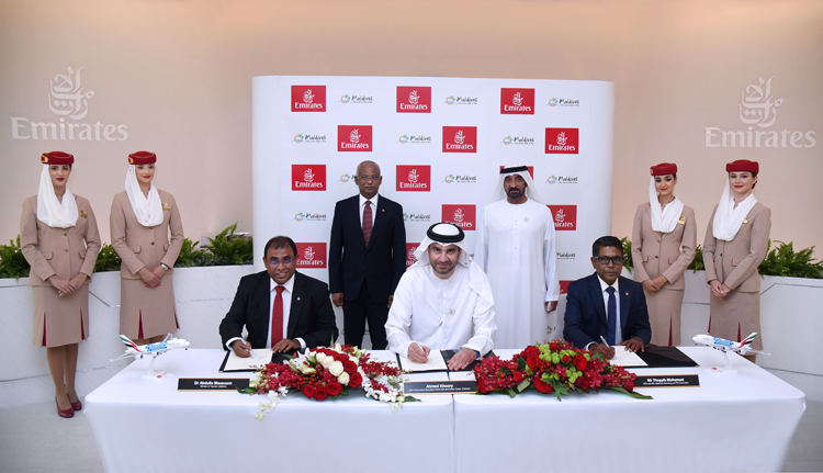The Memorandum of Understanding was signed by Ahmed Khoory, SVP Commercial West Asia & Indian Ocean at Emirates and Dr Abdulla Mausoom, Minister of Tourism Maldives, and Mr Thoyyib Mohamed, CEO and Managing Director, Maldives Marketing and PR Corporation.