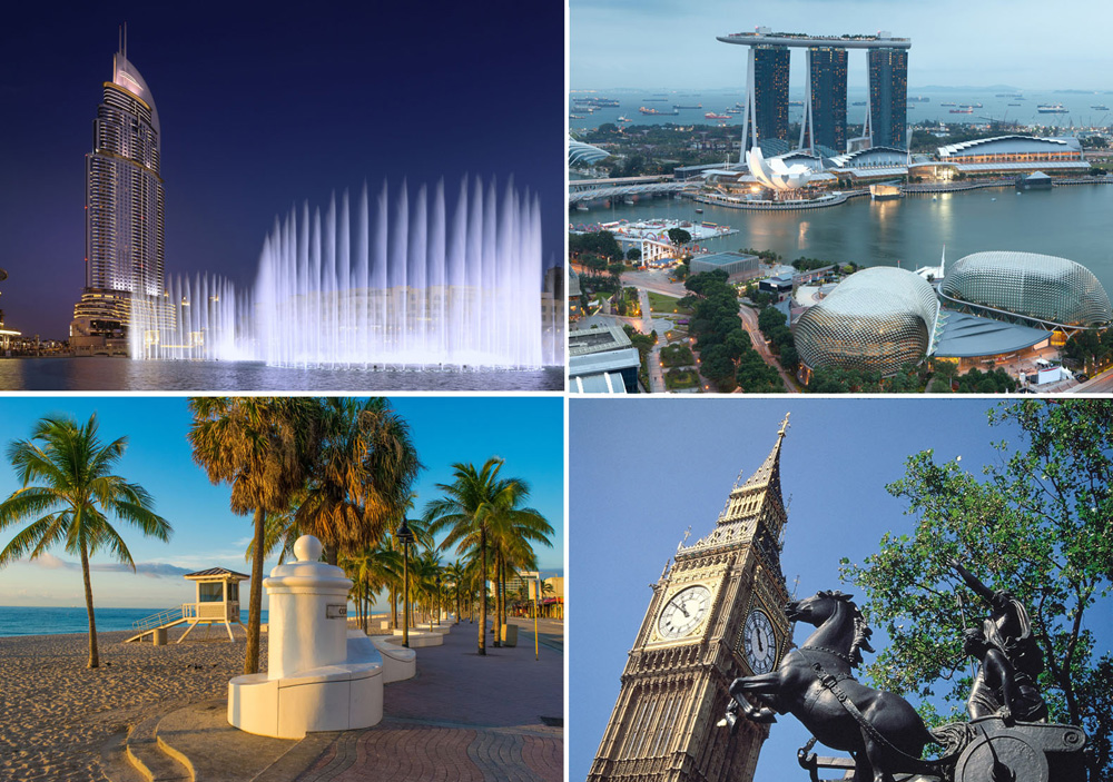 Photo caption: Clockwise - Dubai, Singapore, London and Fort Lauderdale.
