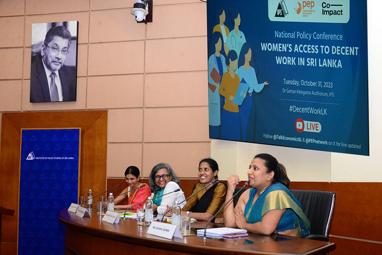 In light of these challenges, the Institute of Policy Studies of Sri Lanka (IPS), in collaboration with Partnership for Economic Policy (PEP) and Co-Impact, hosted the National Policy Conference on Women’s Access to Decent Work in Sri Lanka on 31st October 2023. The conference served as a platform for policymakers and key stakeholders to discuss means of improving women’s access to decent work in the country, focusing on two main aspects: the importance of creating decent jobs for women and the role of childcare facilities in enhancing women’s access to decent work in Sri Lanka.