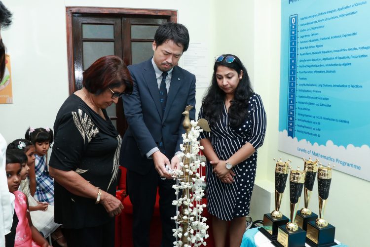 Image Caption : Lighting of the oil lamp by Mr. Yohei Nakagawa, Managing Director of Kumon India Sri Lanka, Mrs. Prena Moitra, Area Development Manager of Kumon India Sri Lanka and Mrs. Viji Ebert, Chief Instructor of Kumon Achievers Centre