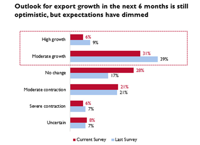 A significant number of exporters are considering cost-cutting measures, such as reduction in hiring and freezing contract/part-time employment, due to the ongoing economic climate. Despite this sentiment, most firms in the second half of 2021 have retained their employees, while keeping training budgets unchanged.
