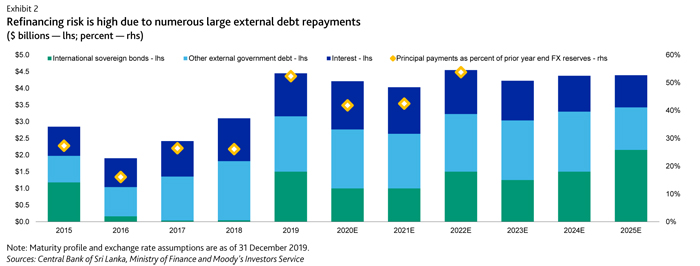 Sri Lanka's gross external financing needs are large, mostly reflecting maturing government debt repayments (sovereign bonds, bilateral and multilateral loans, and concessional debt).