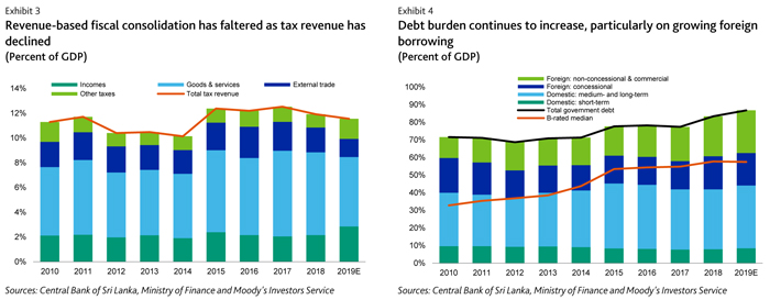 We expect the effects of the coronavirus outbreak to exacerbate Sri Lanka's growing fiscal strains. In November 2019, the government approved a wide-ranging reduction in the value-added tax (VAT) regime. These tax cuts, particularly amid even slower economic growth in 2020, will compound shortfalls in tax revenue mobilization.