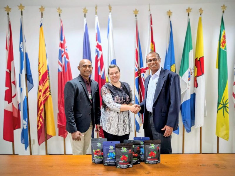 Photo caption: Thilanka De Zoysa, Managing Director, Global Harvest (Pvt) Ltd. (right), and Madhava Amarasinghe, President, Tropical Link Canada, with Gwen Temmel, Counsellor of Commercial and Political Affairs at the High Commission of Canada in Sri Lanka