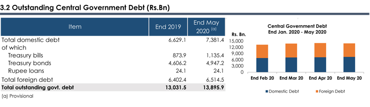 Nevertheless, The total outstanding central government debt has increased by Rs. 864.4 billion during the first five months of 2020.