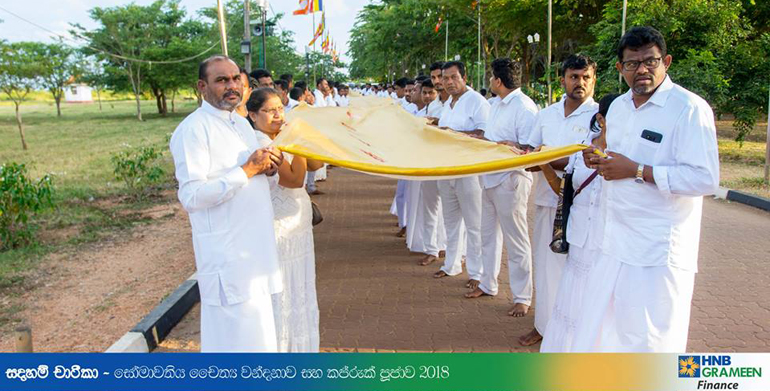 Ven. Thalakolawewe Medhananda Thero conducted the principal ceremony held at the temple premises while the resident incumbent of Somawathi Temple, Ven. Dr Sri Sumangala Thero led the subsequent pooja ceremony to venerate the sacred tooth relic of the Buddha. HNB Grameen Finance also conducted an alms giving ceremony to provide beverages to the Buddhist monks that were present at the occasion. In addition, the Company organized an illumination ceremony of 1200 lamps and offering of 5000 lotus flowers near the sacred ‘Bodhi tree’. At the same time, food and beverage were disseminated for 1500 pilgrims by HNB Grameen.