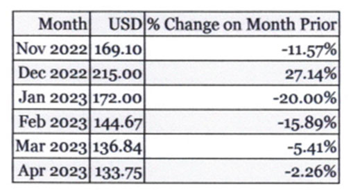 As the Sri Lankan economy continues to contract, it is logical that demand will continue to fall. This in turn reduces the reliance on more costly fuel sources driving overall costs higher. It is also worth noting that coal prices have also reduced leading to a reduction in the price of energy to the industrial sector. Coal prices are expected to remain at approximately USD104 per MT this year.