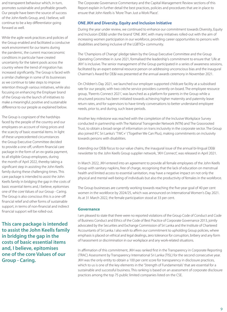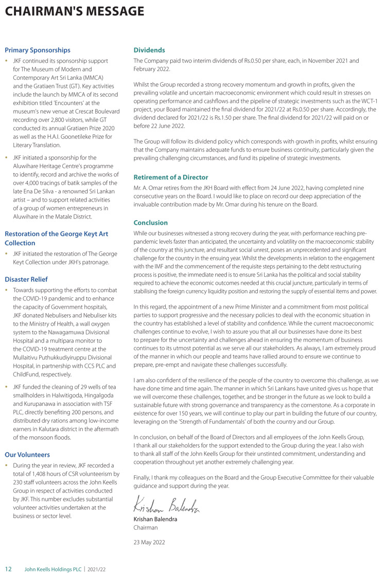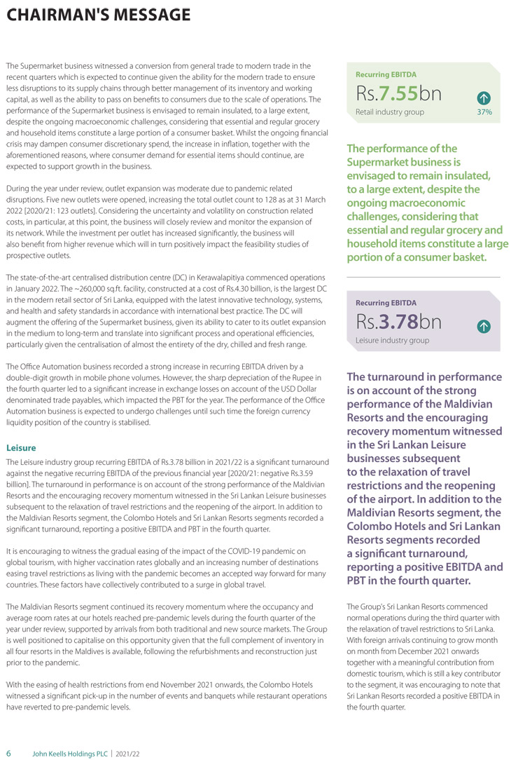 The Maldivian Resorts segment continued its strong recovery where the occupancy and average room rates at our hotels reached pre-pandemic levels. With the relaxation of travel restrictions, the Colombo Hotels and Sri Lankan Resorts segments recorded a significant turnaround, reporting a positive EBITDA and PBT in the fourth quarter.