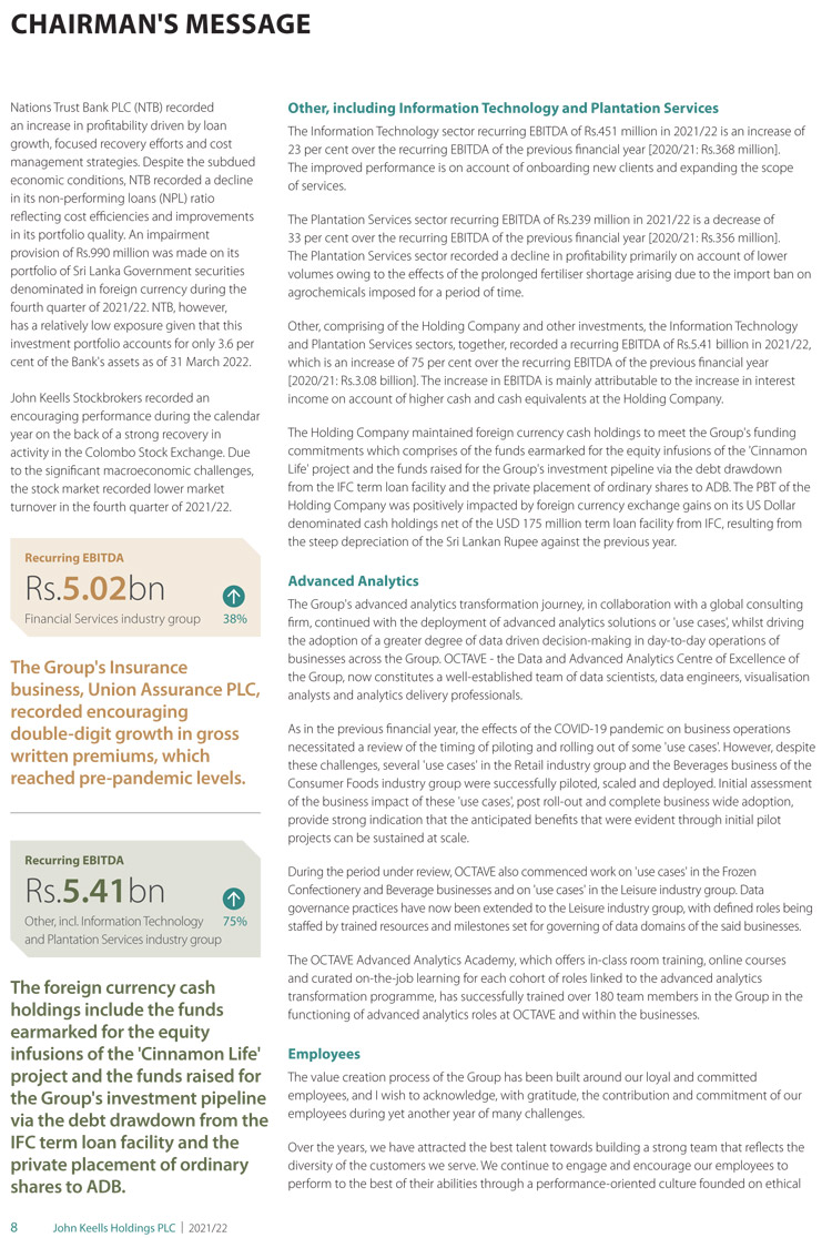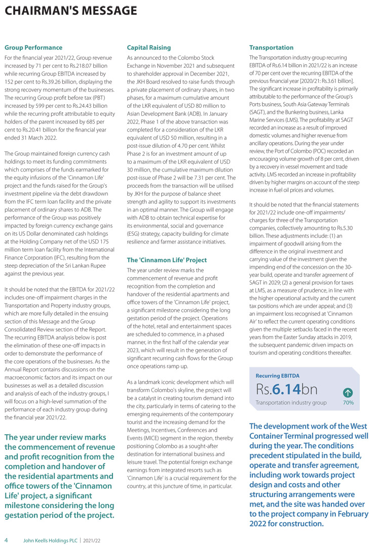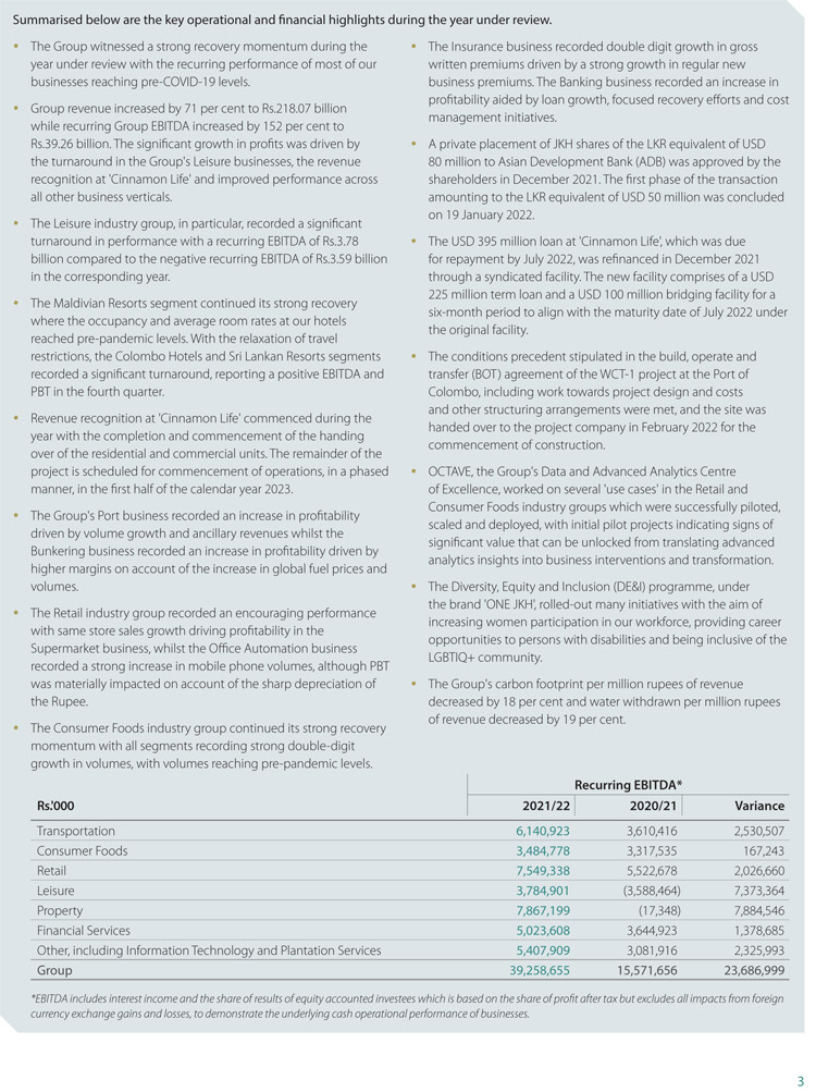 “JKH recurring EBITDA grows 152% to Rs.39.26 billion for 2021/22”