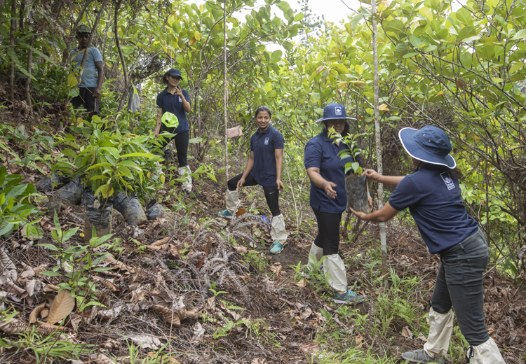 John Keells Foundation mobilized the first batch of the Group’s staff volunteers in a phased tree planting initiative at the ‘Cinnamon Rainforest Restoration Project’ site at Suduwelipotha, Kalawana, Ratnapura District in proximity to the Sinharaja Forest Reserve, in the lead up to World Environment Day 2022, under the guidance of Vimukthi Weeratuga, Senior Biologist at Cinnamon Nature Trails and Dushy Perera, President of Ruk Rakaganno.
