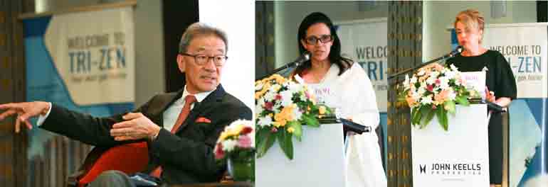 (From left) Michael Yam, CEO/MD, Impetus Alliance Advisors, Malaysia speaks at a breakfast meeting jointly hosted by John Keells Properties and DFCC Bank; Roshanie Jayasundera-Moreas, Chief Marketing Officer, John Keells Properties and Gillian Edwards, Senior Vice President, Consumer Banking, DFCC Bank PLC
