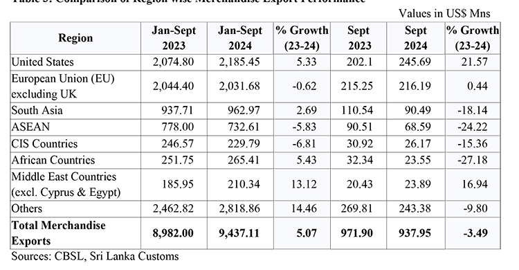 Sri Lanka’s Export Performance in Regions