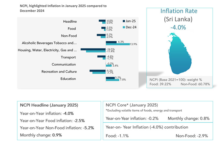 The overall rate of inflation as measured by the NCPI on a Year-over-Year basis was -4.0% in January 2025 and inflation calculated for the December 2024 was -2.0%.