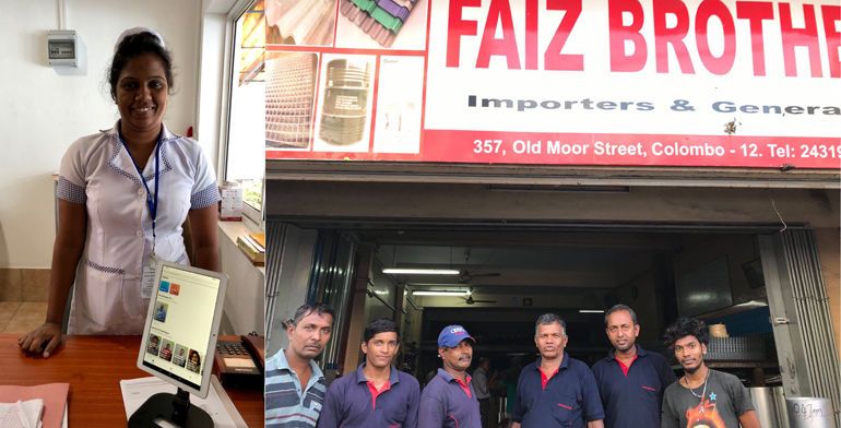 Photo captions: (Above) The oDoc team demonstrates the app to employees at Aramex and (below) an oDoc terminal set up at the Dial Textiles factory sick room which is accessible to all 750 employees (left) and oDoc corporate subscriptions are tailored to companies such as Faiz Brothers in Pettah to cater to the healthcare needs to 15-20 employees (right)