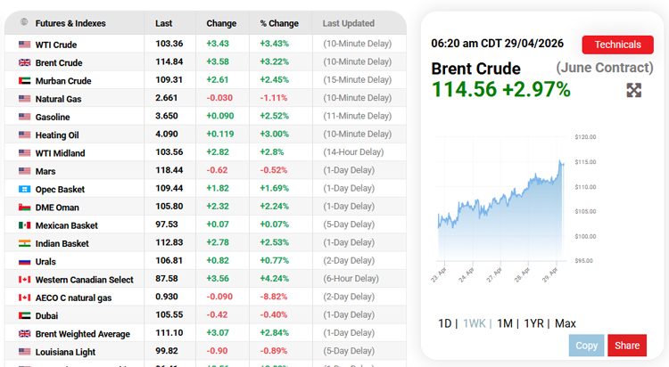 Brent crude rose to around $115 (£85) a barrel on Wednesday, having closed at just over $110 (£81) on Tuesday evening. The price had fallen slightly to $114.37 (£84.68) just before midday BST.