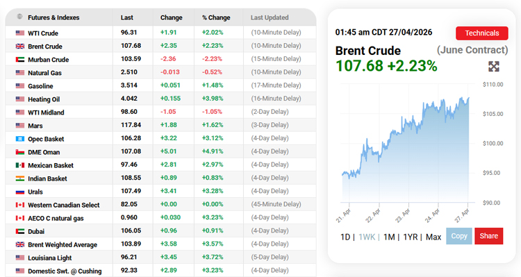 Brent crude futures rose $1.35, or 1.3%, to $106.68 a barrel by 0453 GMT, retreating from early session gains of over $2 a barrel. U.S. West Texas Intermediate was at $95.35 a barrel, up 95 cents, or 1%.