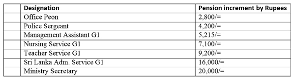 Hon Speaker, further to this, all the public servants who retired after 2015 will be paid an Interim allowance of Rs.3,500/- in addition to the current allowance of Rs.3,525/- and the cost of living allowance.