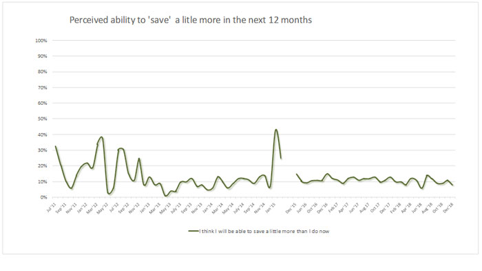 According to the analysis in the fourth quarter (October, November, December) 2018, the expectation among the people to save a little more from their personal earnings in the ensuing 12 months has decreased compared to the third quarter of the year 2018. Please Refer the Graph 02;