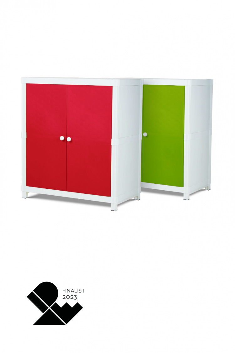 Image Caption – FLAP folding chair and the FLO modular cupboard series which have been selected as finalists for the IDEA Awards 2023
