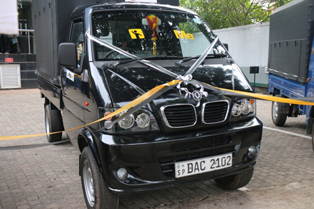 Photo captions: (Above) PickMe Chief Operating Officer Isira Perera unveiling the new fleet of trucksand (below) a PickMe Truck