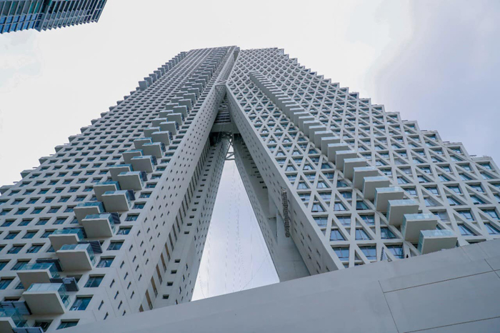 The construction of the building commenced in 2012 in the 2.5-acre land adjacent to the Beira lake. The ground floor of the building covers an area of 40,000 square feet. It consists of 404 super luxury apartments in addition to a world-class shopping complex. Altire building complex has two soaring towers one with 68 floors and the other with 63 floors. The building will be one of the tallest buildings in Colombo when it is complete.