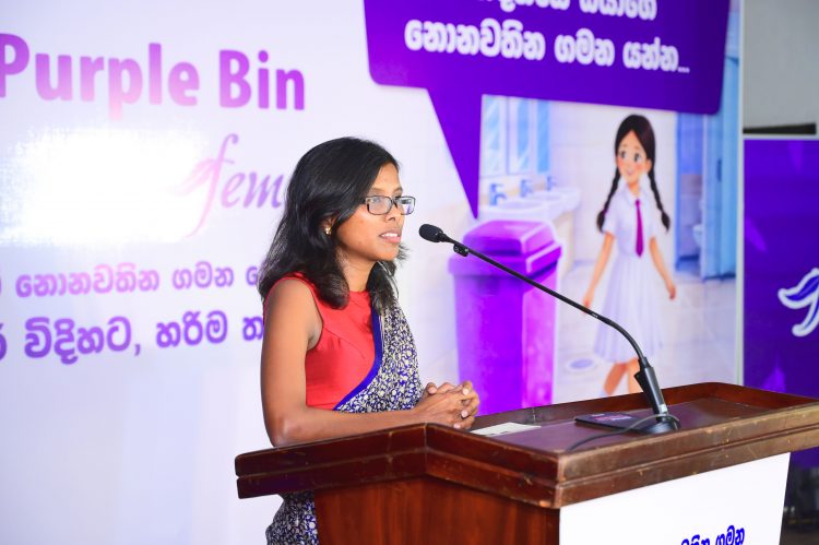 Sachini Gamage, General Manager – Feminine Hygiene at Hemas Consumer Brands, sharing the purpose of the Purple Bin project powered by Fems