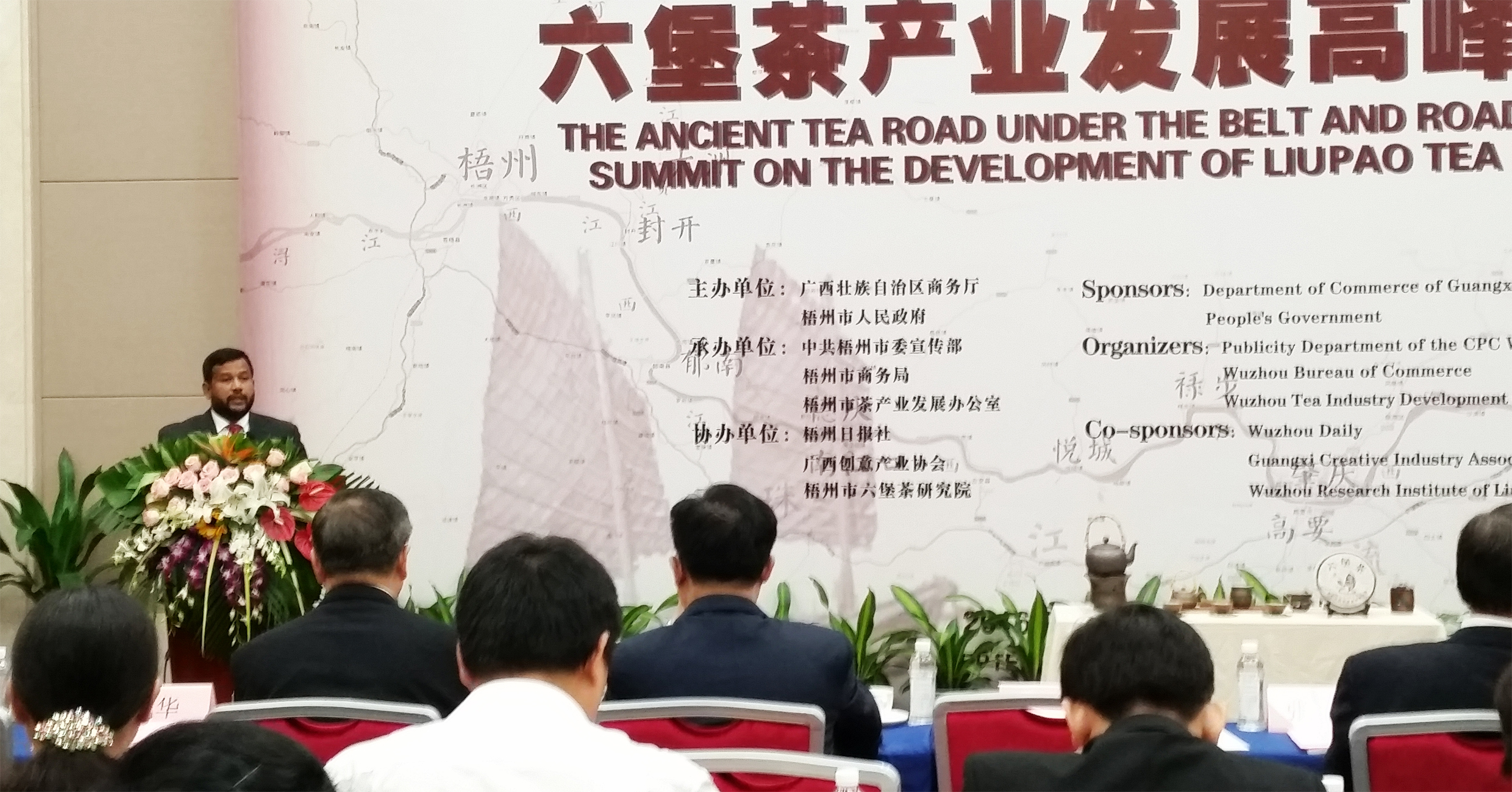 Vice-Chairman Xiulong stressed of the strong and historic Chinese-Sri Lanka relations and added: “We are pleased to receive Ceylon Tea. I also stress about the variety, value and production quantity of Guangxi's tea, the history of Loubao tea of Wuzhou city. I am also pleased to inform you that we have a new plan for Guangxi's tea development. I invite you and Sri Lankan merchants to visit Guangxi and Wuzhou tea industry for a greater understanding with an eye to future tea industry cooperation between both countries.” Minister Bathiudeen positively responded to Vice-Chairman Xiulong’s invitation and stressed he would instruct his officials accordingly. Thereafter Vice-Chairman Xiulong invited Minister Bathiudeen to address the Summit on Development of Liu Pao Tea Industry at held at the same time and venue in Nanning which was accepted by Minister Bathiudeen.
