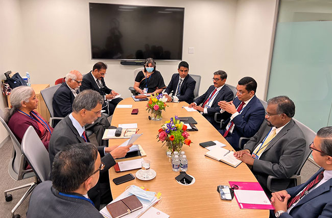 A Sri Lankan delegation, led by Hon. Minister of Finance Ali Sabry, participated in the 2022 Spring meetings of the International Monetary Fund (IMF) and the World Bank Group held in Washington DC during 18-22 April 2022. The delegation had meetings with several International Financial Institutions (IFIs), including the IMF and the World Bank, and bilateral partners during their stay in Washington DC.