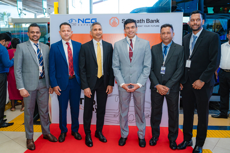 From left: Chirath Samarasekara, Head of Card Centre, Sampath Bank; Darshin Pathinayake, Assistant General Manager – Advanced Analytics & Card Centre, Sampath Bank; Sanjaya Gunawardana, Managing Director/CEO, Sampath Bank; Nikitha Grero, Chairman, NCG Express; Amila Ranmadala, General Manager, NCG Speed Holdings; and Guyanga Weerasekara, Senior Manager – Projects, NCG Speed Holdings.