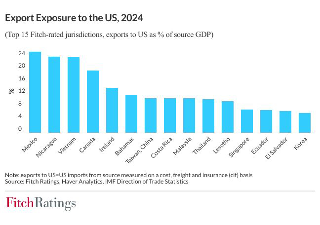 We consider the outlooks for banking sectors in other parts of APAC to be more resilient to higher US tariffs, largely because these economies typically have lower direct export exposure to the US. However, bank asset quality in certain sectors could still be hurt by additional US tariff increases, or by indirect trade effects.