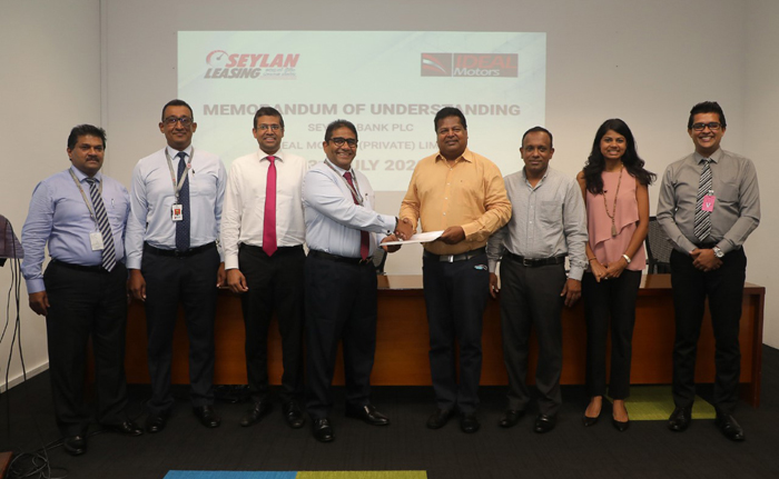 Image Caption: (Standing from left to right) Mr. A H M Aziz – SMG, Product & Channel Development- Seylan Bank, Mr. Dilum Amarasinghe – Head of Leasing- Seylan Bank, Mr. Ramesh Jayasekara – Senior Deputy General Manager- Seylan Bank, Mr. Kapila Ariyaratne – Director/Chief Executive Officer - Seylan Bank, Mr.Nalin Welgama - Chairman Ideal Group, Mr. Chaminda Wanigaratne - Director Automotive - Ideal Motors (Pvt) Ltd, Ms.Nimisha Welgama - Director - Legal and Corporate Affairs - Ideal Group, Mr.Dilshan Tennakoon - Head of Sales - Ideal Motors (Pvt) Ltd.