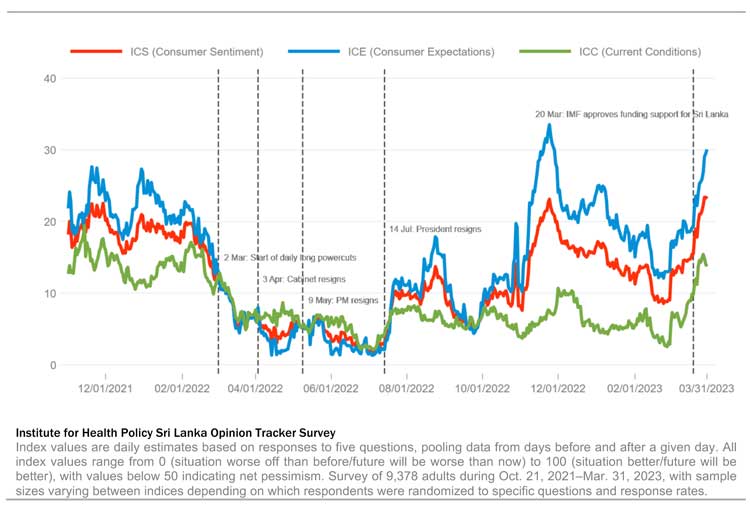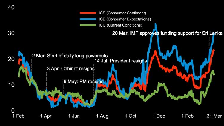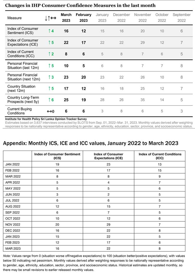 Future expectations improved the most, suggesting that the IMF funding agreement with Sri Lanka approved in March and other associated positive economic signals influenced public perceptions positively.