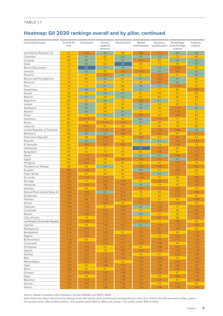 Published annually since 2007, the GII is said to be a leading benchmarking tool for business executives, policy makers and others seeking insight into the state of innovation around the world. The core of the GII report consists of a ranking of world economies’ innovation capabilities and results.