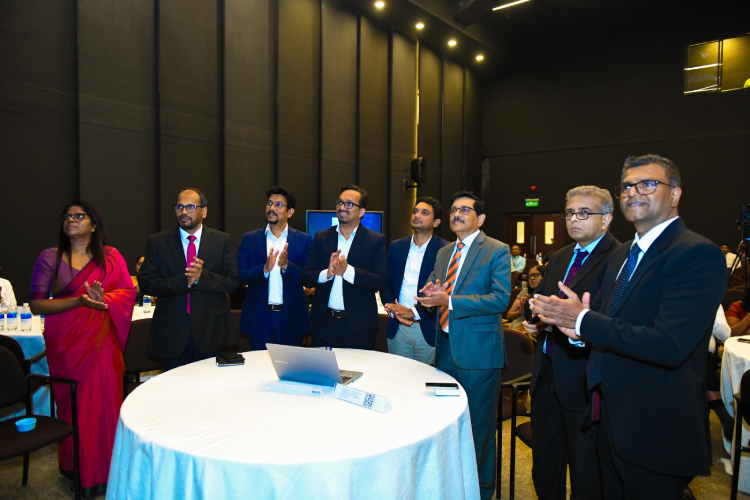 Photo - Official Launch of the Export Performance Indicators 2024: (From left) Mrs. Kumudinie Mudalige, Acting Additional Director Genaral (Development); Mr. Mangala Wijesinghe, Chairman and CEO of the Sri Lanka Export Development Board (EDB); Hon. Eng. Eranga Weeraratne, Deputy Minister of Digital Economy; Hon. Sunil Handunnetti, Minister of Industry and Entrepreneurship Development; Hon. Chathuranga Abeysinghe, Deputy Minister of Industries and Entrepreneurship Development; Dr. P. Nandalal Weerasinghe, Governor of the Central Bank; Dr. Hans Wijayasuriya, Chief Advisor to H.E. the President on Digital Economy; and Dr. Harshana Suriyapperuma, Secretary to the Treasury and Ministry of Finance, Planning and Economic Development.