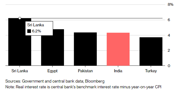 A recent report on Bloomberg titled “South Asia Tops the Ranks of World's Highest Real Interest Rates” written by Michelle Jamrisko, points out that Sri Lanka, Pakistan and India rank in the top five of the world’s major economies with the highest inflation-adjusted interest rates.