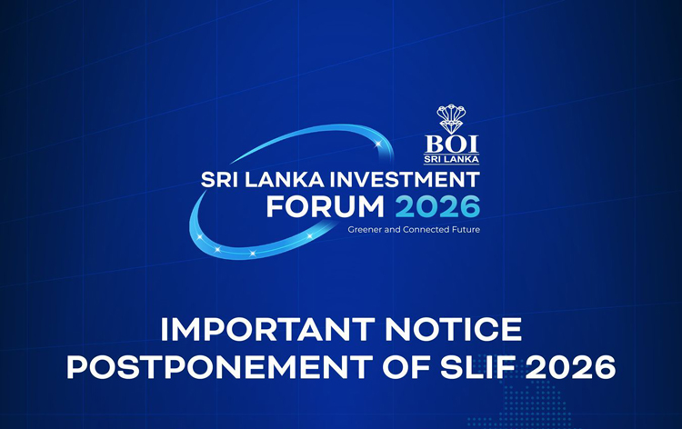 The Board of Investment of Sri Lanka (BOI) has announced the postponement of the Sri Lanka Investment Forum 2026, which was scheduled to be held on March 30.