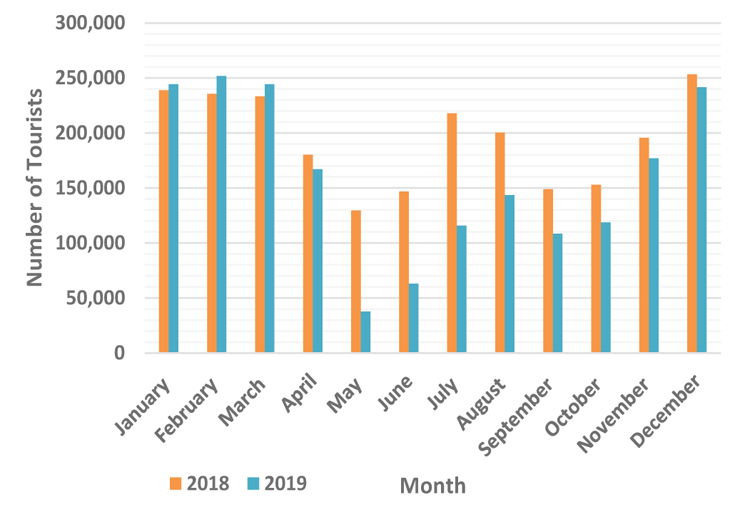 In terms of monthly arrivals in 2019, January, February, March, recorded the highest growth rates compared to 2018. However, following the Easter Sunday terror attacks in April last year Sri Lanka witnessed a sharp decline in tourist arrivals.