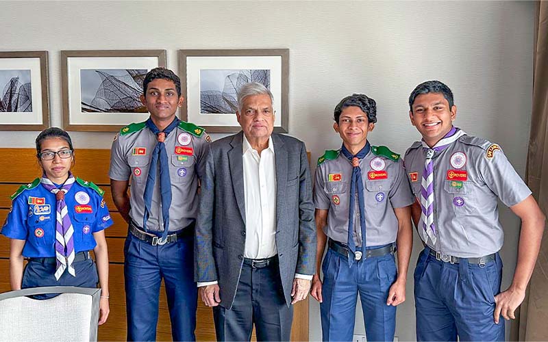 Four Rover Scouts from the Sri Lanka Scout Association representing Sri Lanka at the Coronation Camp organised by The Scout Association, United Kingdom called on President Ranil Wickremesinghe in London yesterday (07).