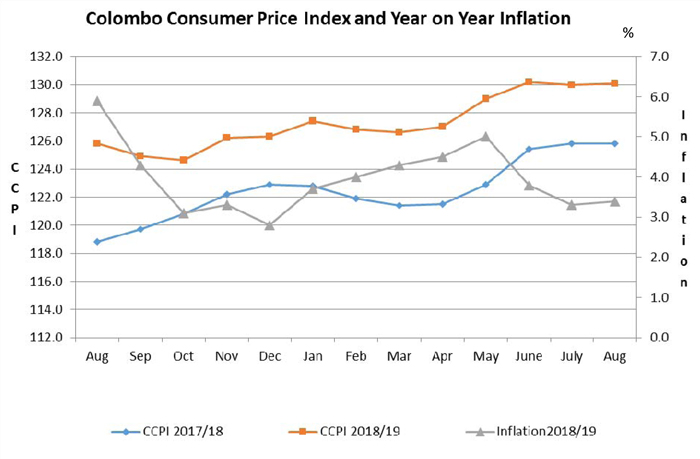 Sri Lanka's inflation, as measured by the change in the Colombo Consumers' Price Index (CCPI) marginally increased to 3.4 % in August 2019 from 3.3 % in July 2019, earlier data from the state statistics office showed.