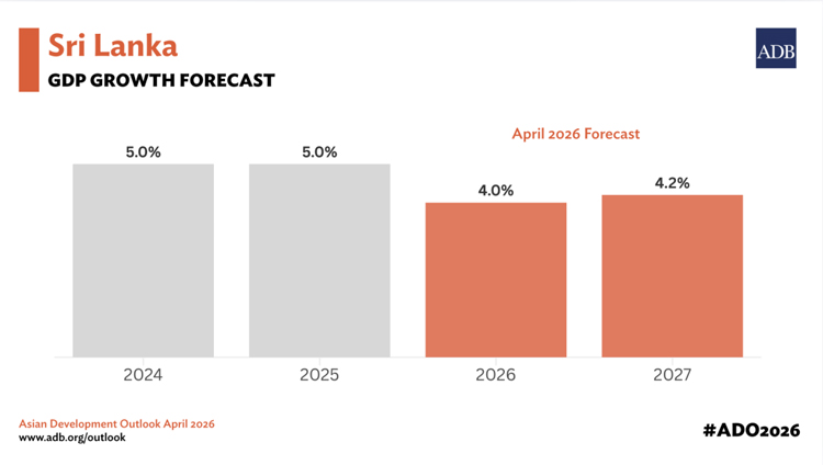 This forecast is based on an early stabilization scenario for the Middle East conflict, according to the Asian Development Outlook (ADO) April 2026, Asian Development Bank's (ADB) flagship economic publication. Sri Lanka's recovery held firm in 2025 despite the late-year disruption of Cyclone Ditwah. Private consumption surged amid low inflation and easing interest rates, while remittances hit a record high, as did the primary budget surplus. The current account posted a third consecutive surplus, and official reserves climbed to their strongest level in years.