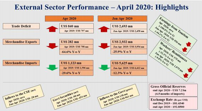 Sri Lanka’s external sector performance in April 2020 was severely affected by the COVID-19 pandemic related economic interruptions.