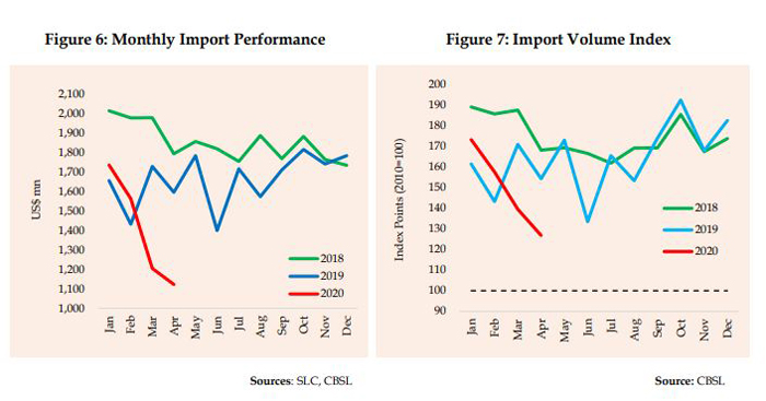 The selective import clearing process followed by the Sri Lanka Customs (SLC), prioritising essential consumer items and the disruption to other import related services due to the imposition of curfew, disruptions to global supply and logistic chains, lower commodity prices following the COVID-19 outbreak were the main reasons for this significant decline in the expenditure on imports.