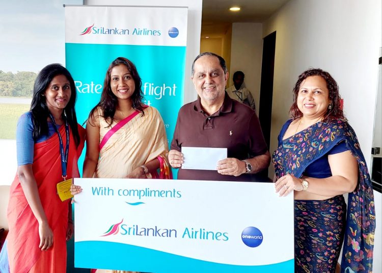 Two lucky top tier members of SriLankan Airlines’ frequent flyer programme, FlySmiLes, being rewarded with 44,000 free miles each at the Bandaranaike International Airport in celebration of the 44th anniversary of the airline