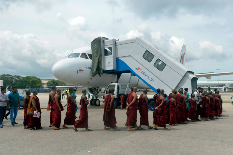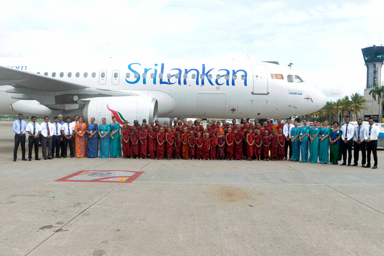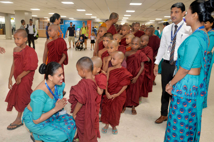 In keeping with religious traditions, the group of Samaneras and Theros were offered a special almsgiving (Dana) and pirikara in the airport's Silk Route Arrival Lounge. The almsgiving was attended by SriLankan staff volunteers, members of the airline’s senior management team and senior managers from Airport and Aviation Services (Sri Lanka).