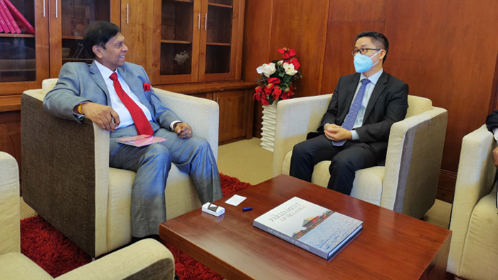 Acting Ambassador of China to Sri Lanka Hu Wei yesterday (24) called on state minister for Finance, Capital Market, and State Enterprise Reforms Ajith Nivard Cabraal.