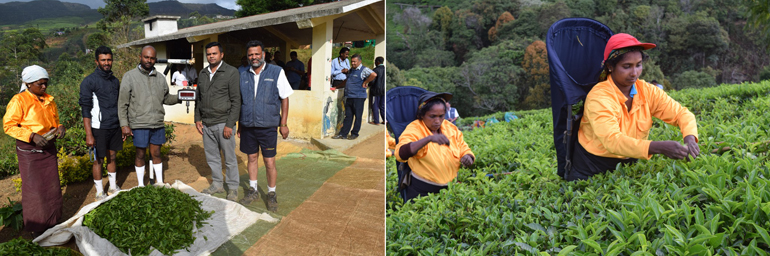 Photo captions: (Above) Hayleys Plantations Managing Director Dr. Roshan Rajadurai. (Below) Real-Time Digital weighing system implemented at Hayleys Plantations and tea harvesters