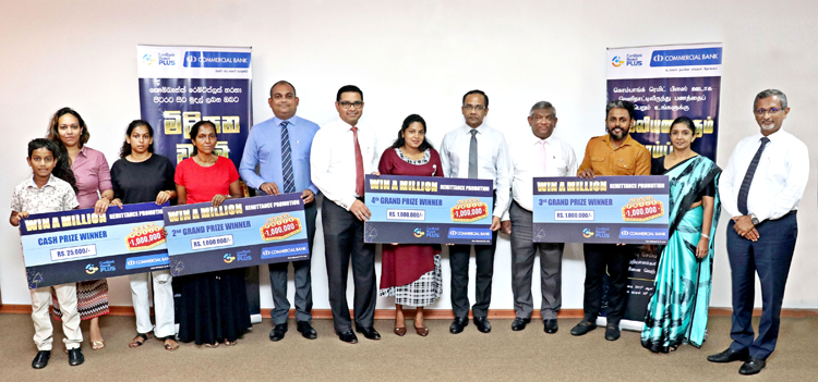 The Commercial Bank of Ceylon recently presented Rs 5 million in cash prizes to the lucky winners of the Bank’s ‘Win a Million’ remittance promotion launched in January this year.