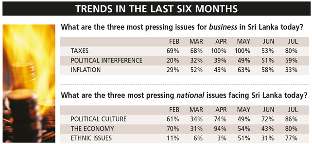 Moving on to the most pressing national issues facing Sri Lanka today,86% ( up from 72% in June) of respondents feel that the political culture needs urgent attention, which isn’t surprising given the prospect of elections later in the year.