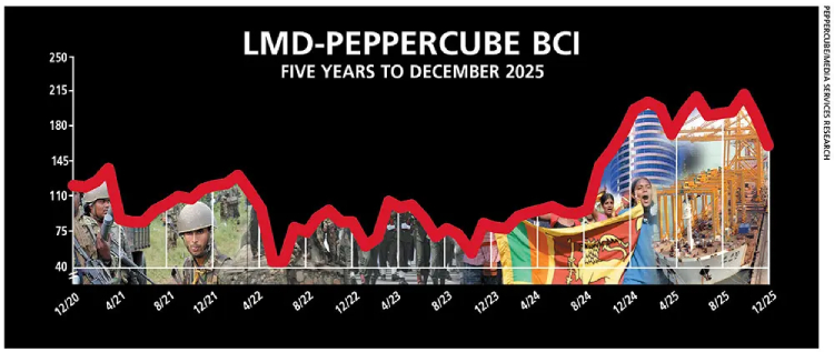 THE INDEX If these developments are any indication, the outcome of latest LMD-PEPPERCUBE Business Confidence Index (BCI) is telling – the index plummeted by 25 basis points from 189 in November to 164 in December.