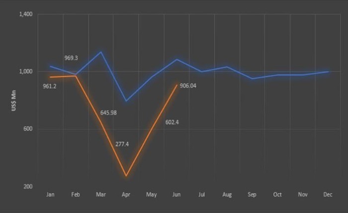 Earnings from merchandise exports rebounded in June 2020 to US $ 906.02 Mn as per the Customs statistics, with the export sector progressively commencing actions following the relaxation of lockdown measures and the recovery of both domestic and global supply and demand chains to some extent.